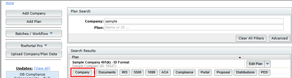 1. Select your company from the Home page that you want to update by clicking on the Company button. This will take you to the Edit Company page.